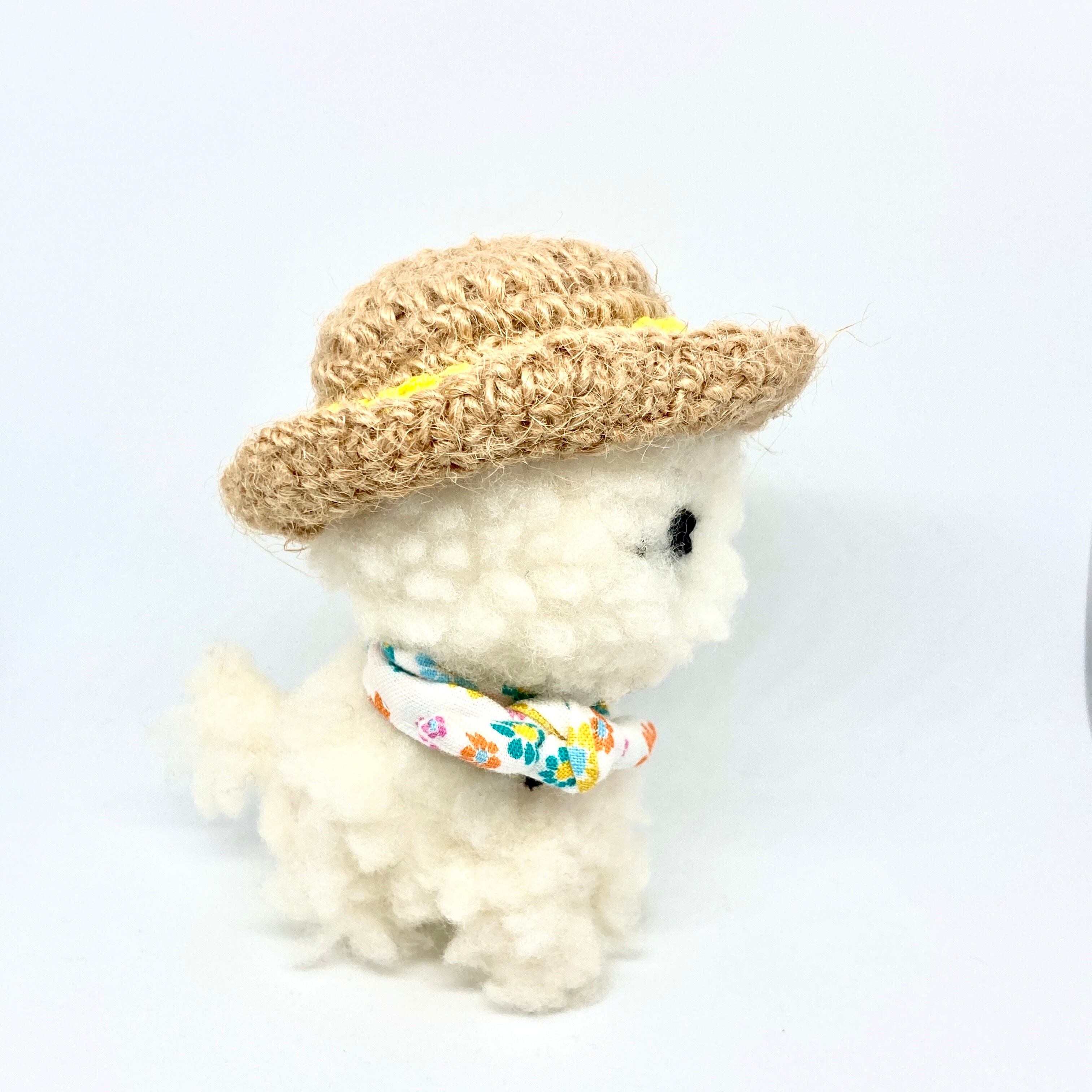 ☆こちらはの黄色いリボンの帽子と、イエロー系の花柄のスカーフをしています。よく見ると優しく微笑んでいるようにも見えます。
