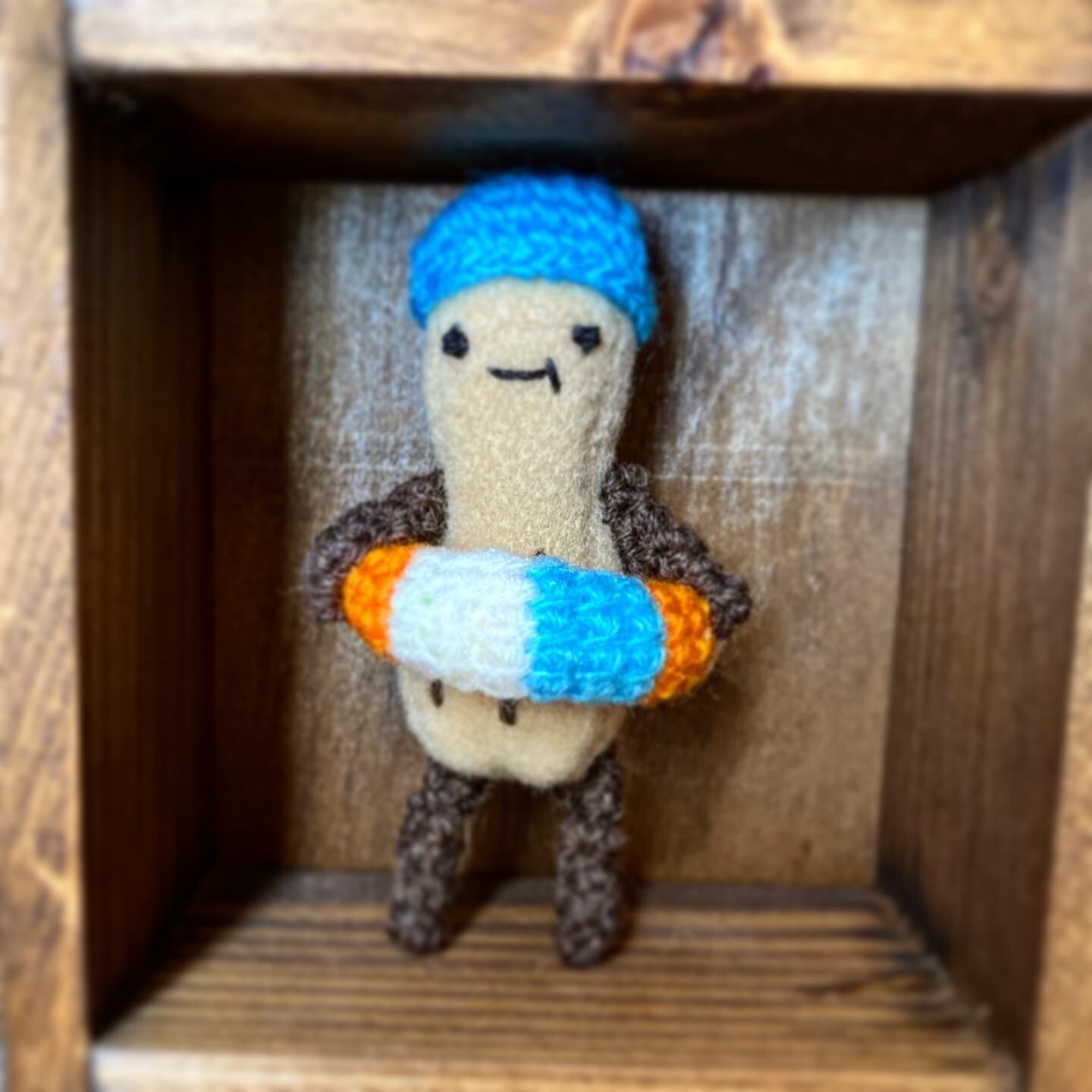 こちらは鮮やかなブルーのキャップ、カラフルな(ブルー、オレンジ、白、キミドリ、ピンク)浮き輪のピーナッツです。