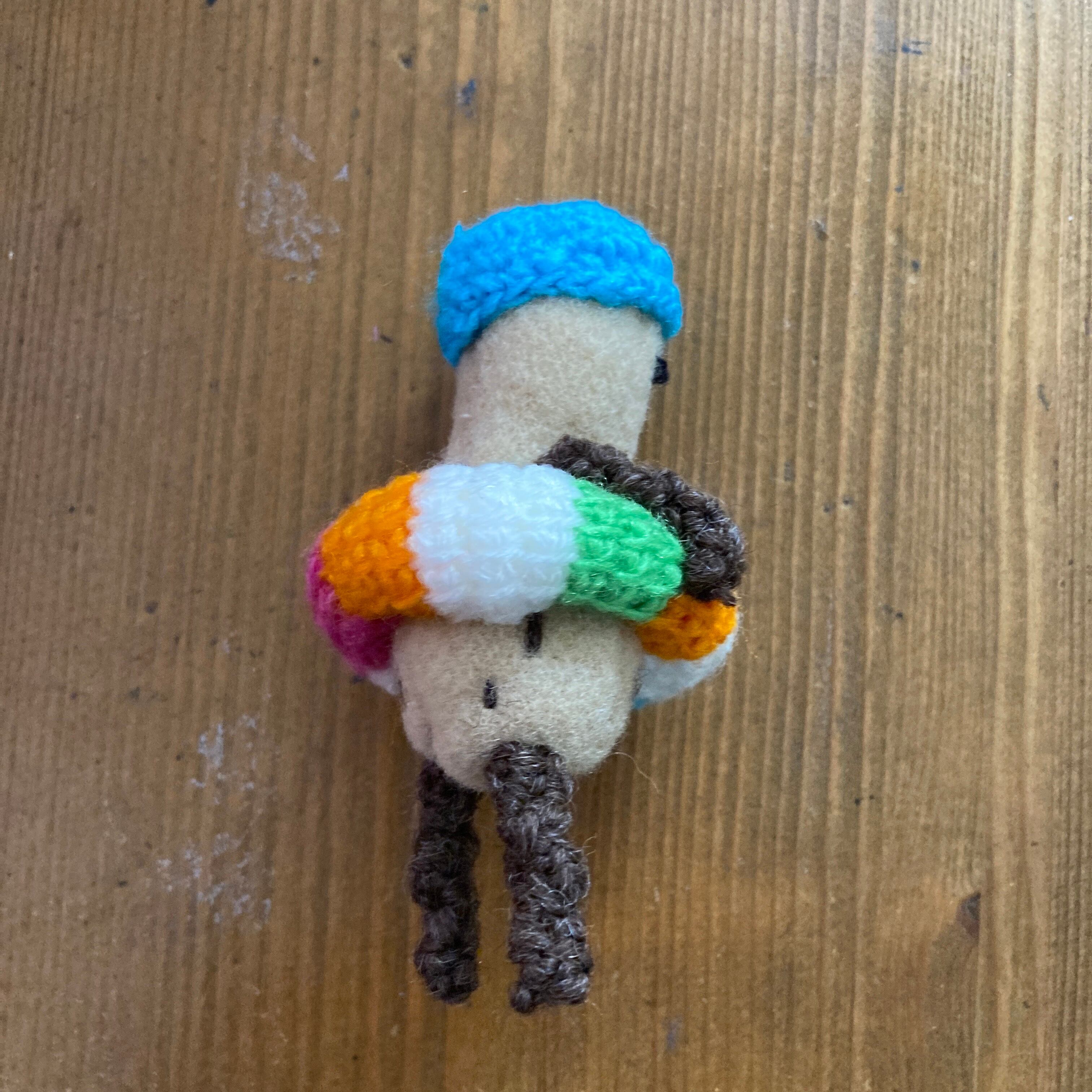 ボディはウールの布製で、他は毛糸やレース糸でできています。