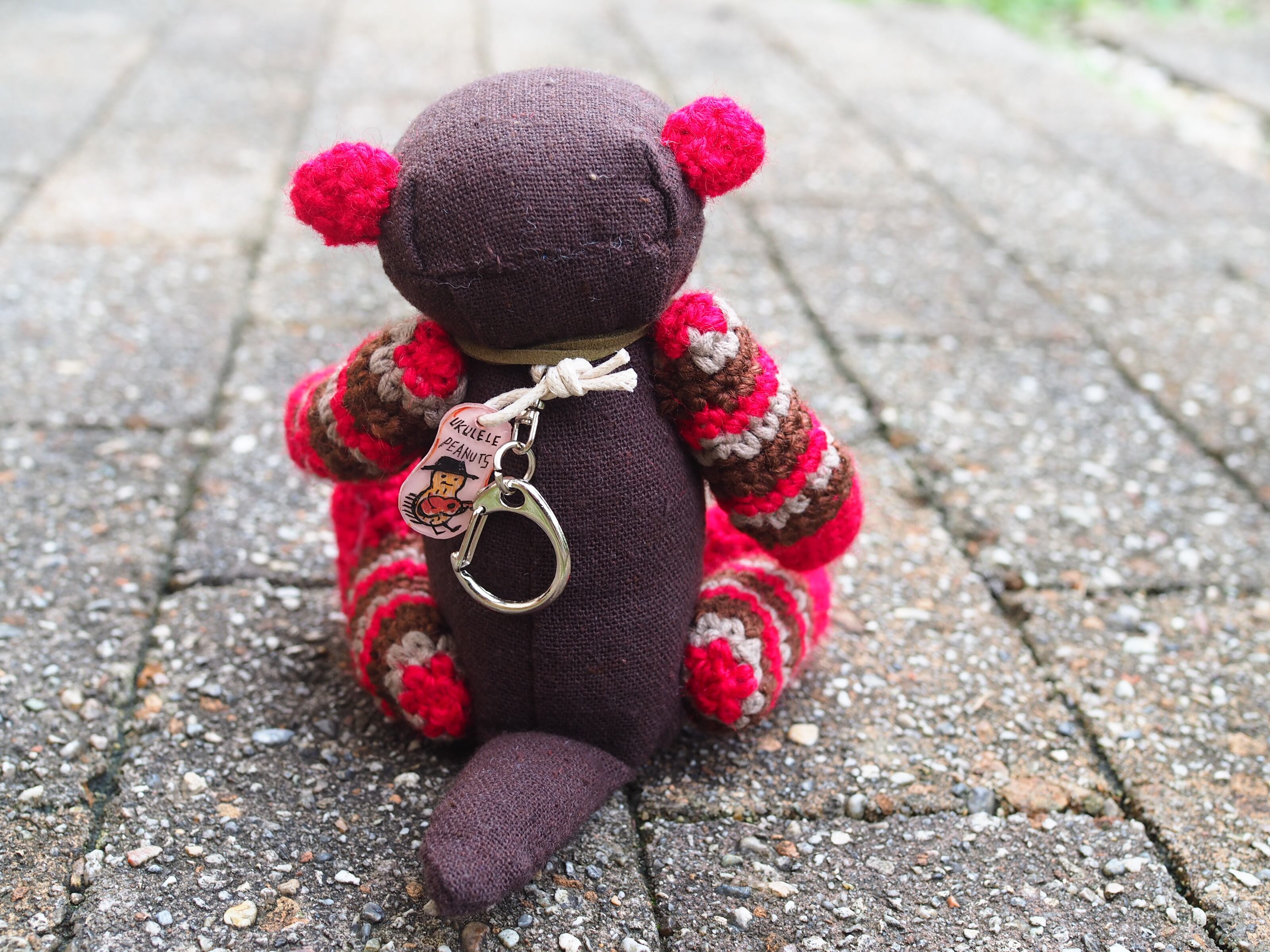 首の後ろのループにはキーホルダーが付いていて、(キーホルダーにはかなり大きめです)