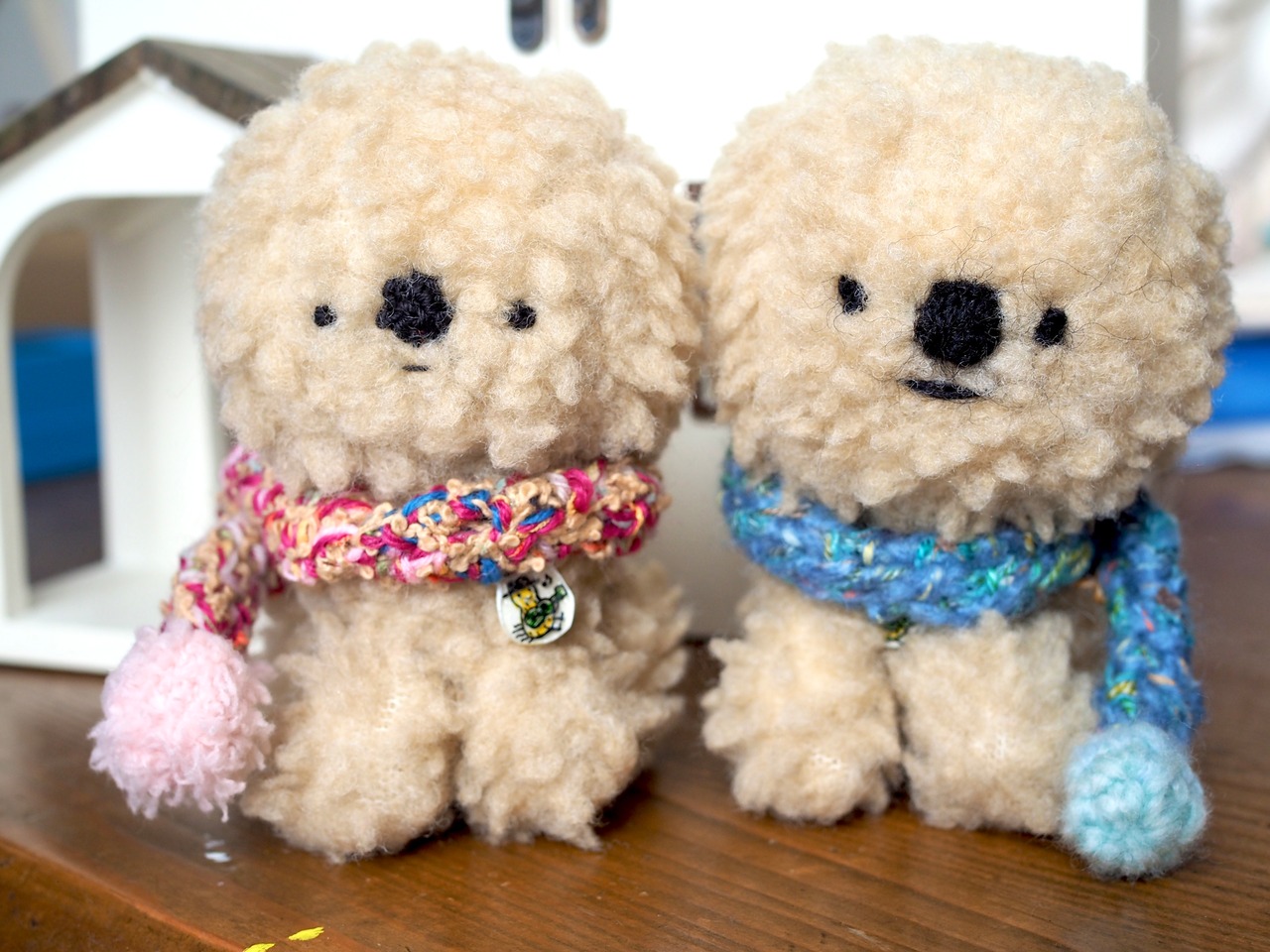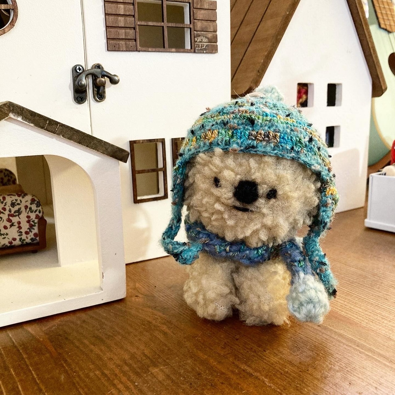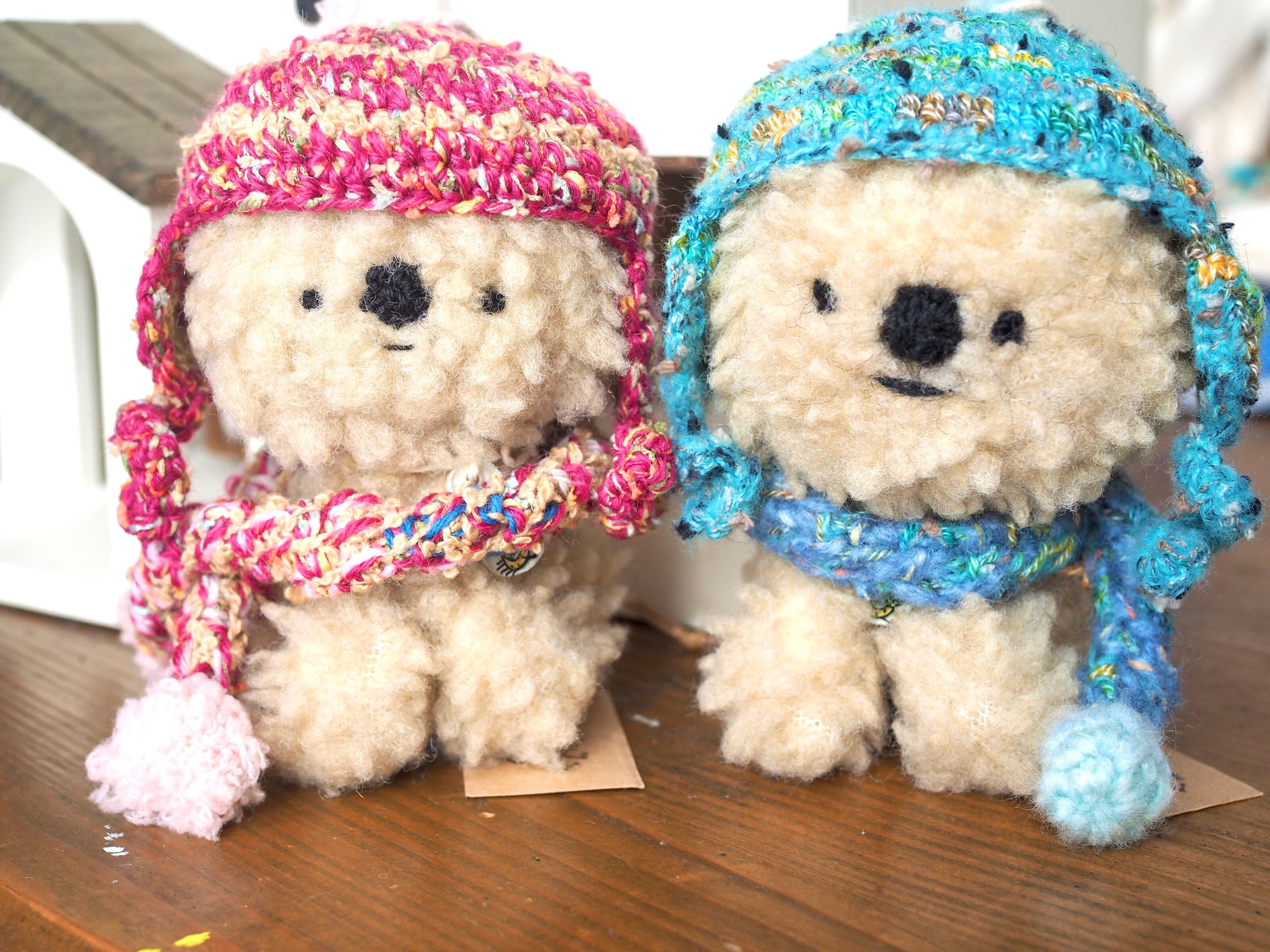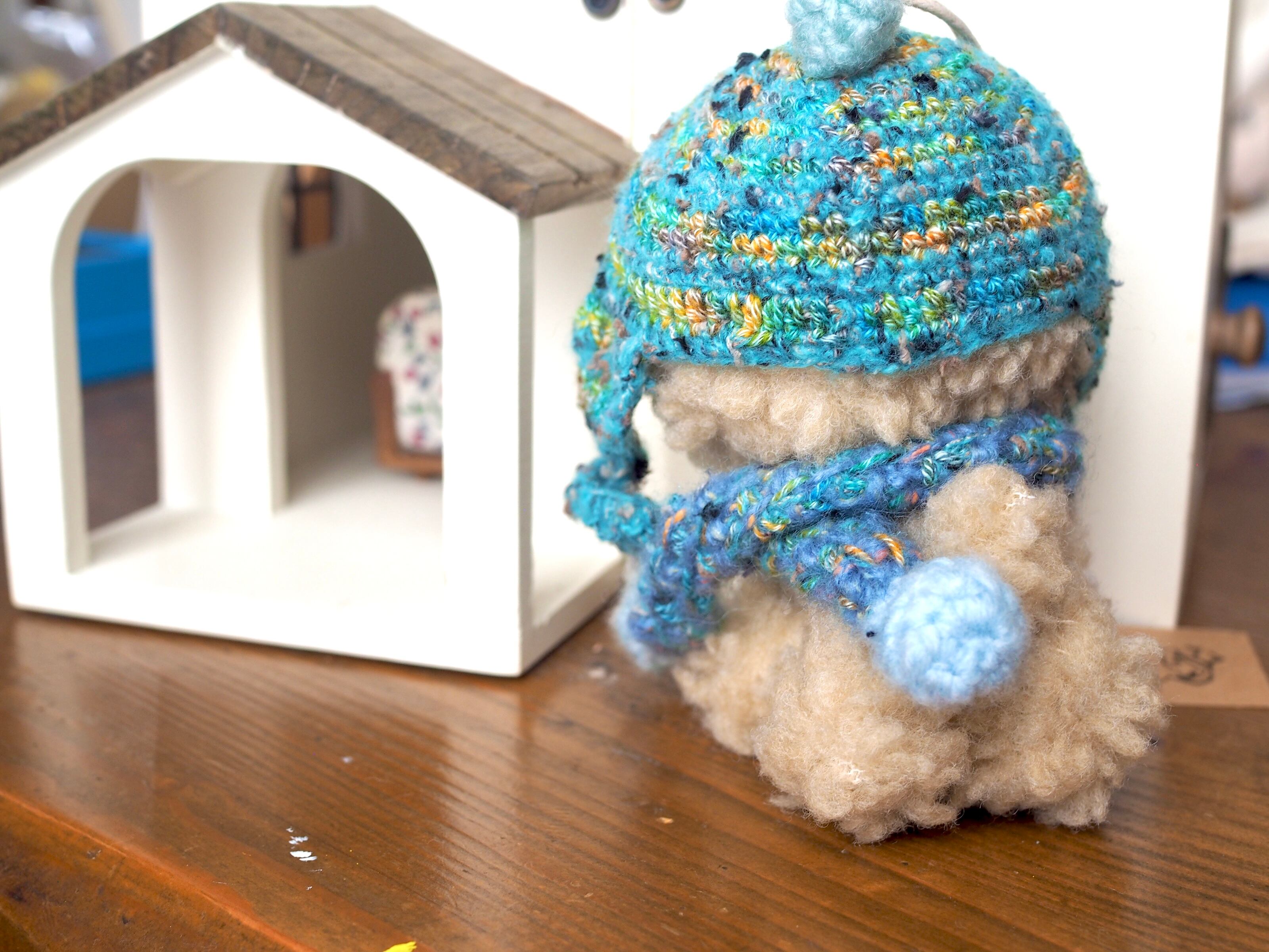 ボディはモコモコした布製、帽子やマフラーは毛糸です。