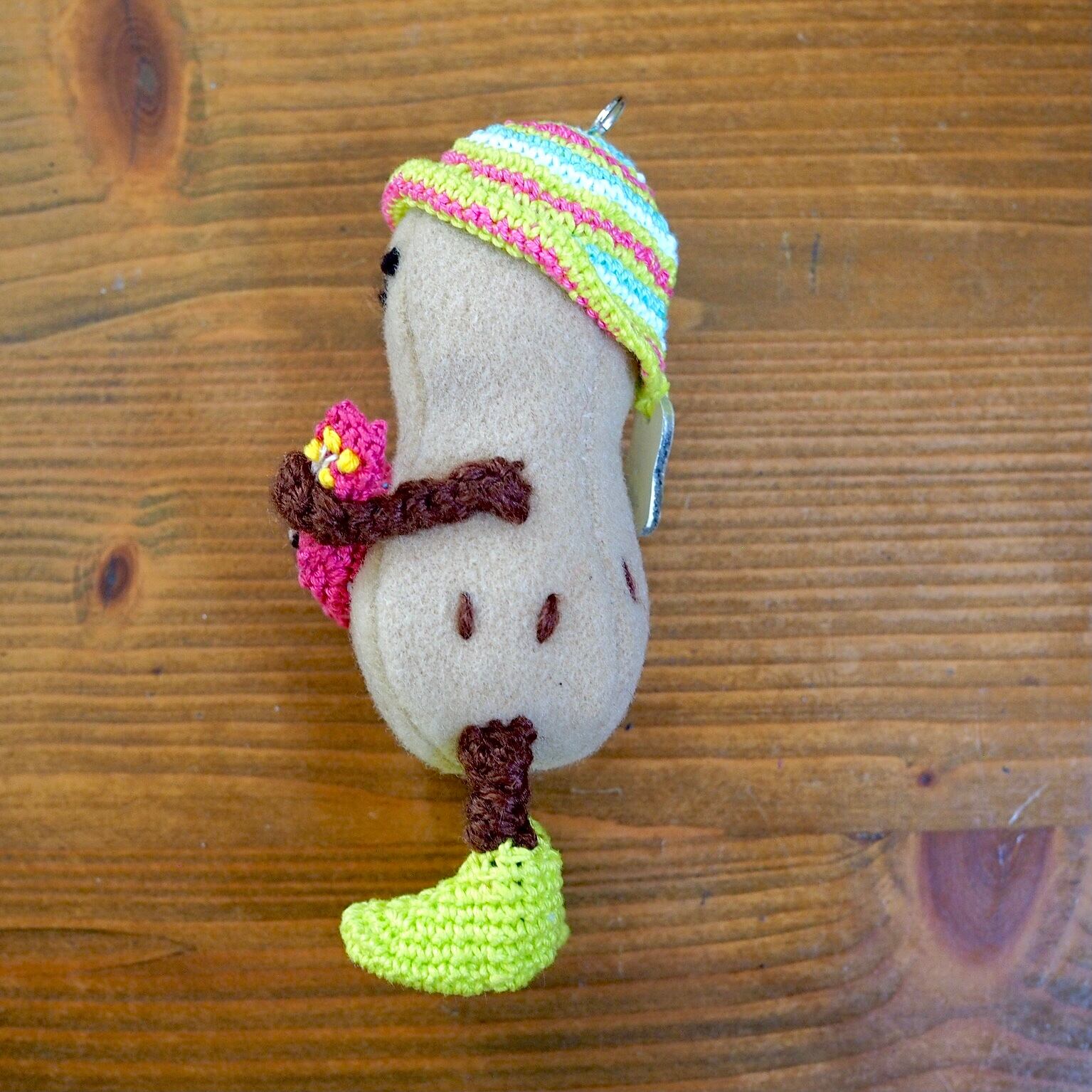 紐付きですので、ぶら下げて飾ったり、楽器のケースにつけてレッスンのおともに連れ出してもらってもピーナッツくんは大喜びです!