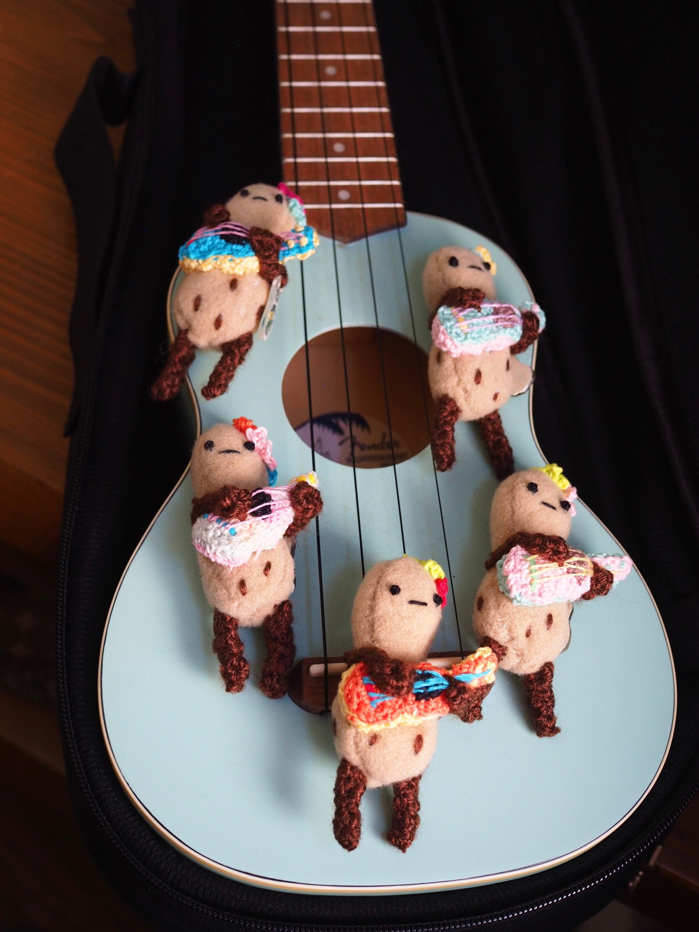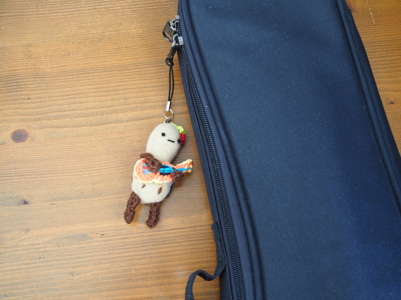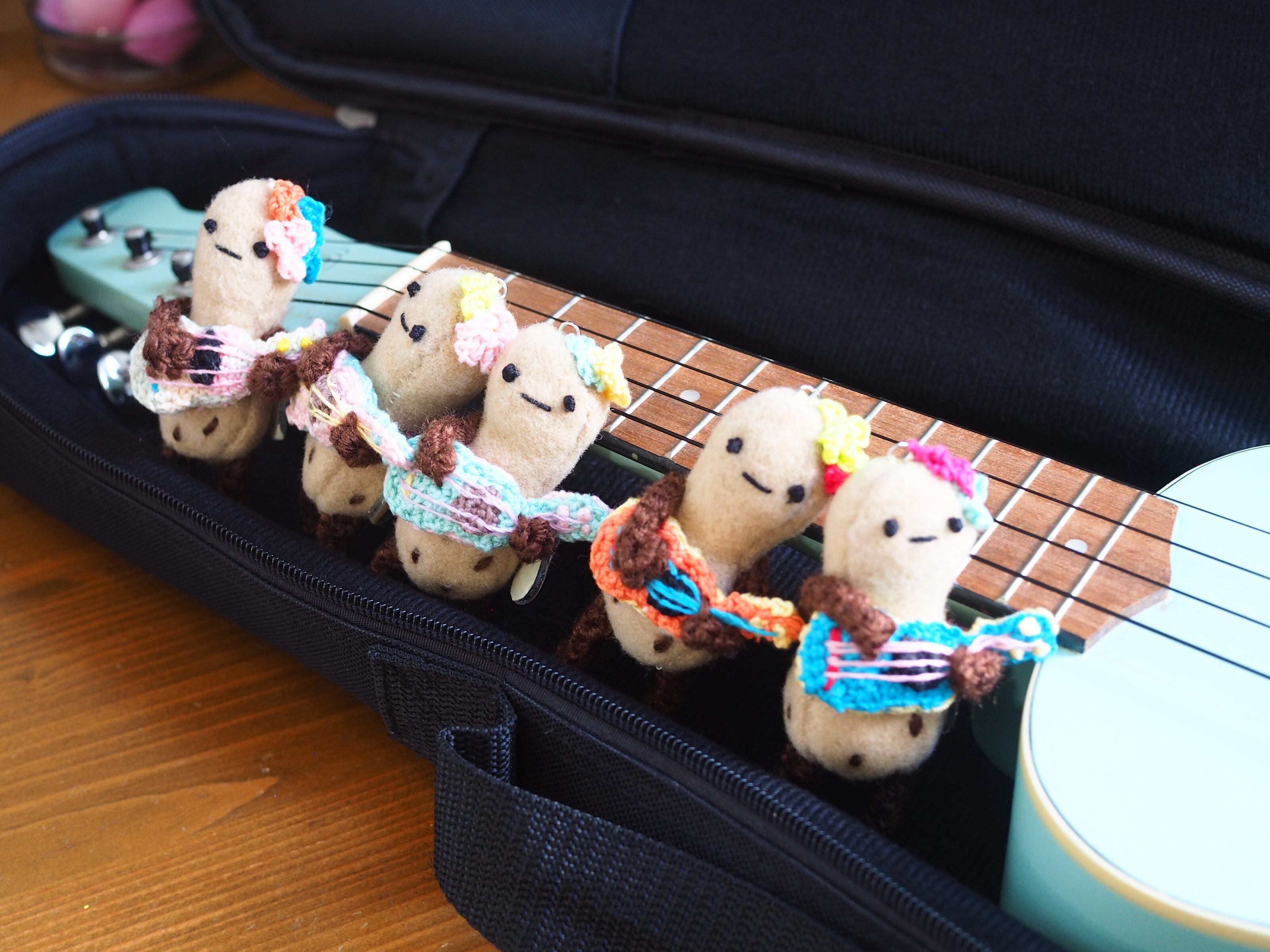 ウクレレケースにつけてレッスンのおともに、キーホルダーにしたり、ポーチやカバンのファスナー部分につけてお出かけしたりすることもできます。