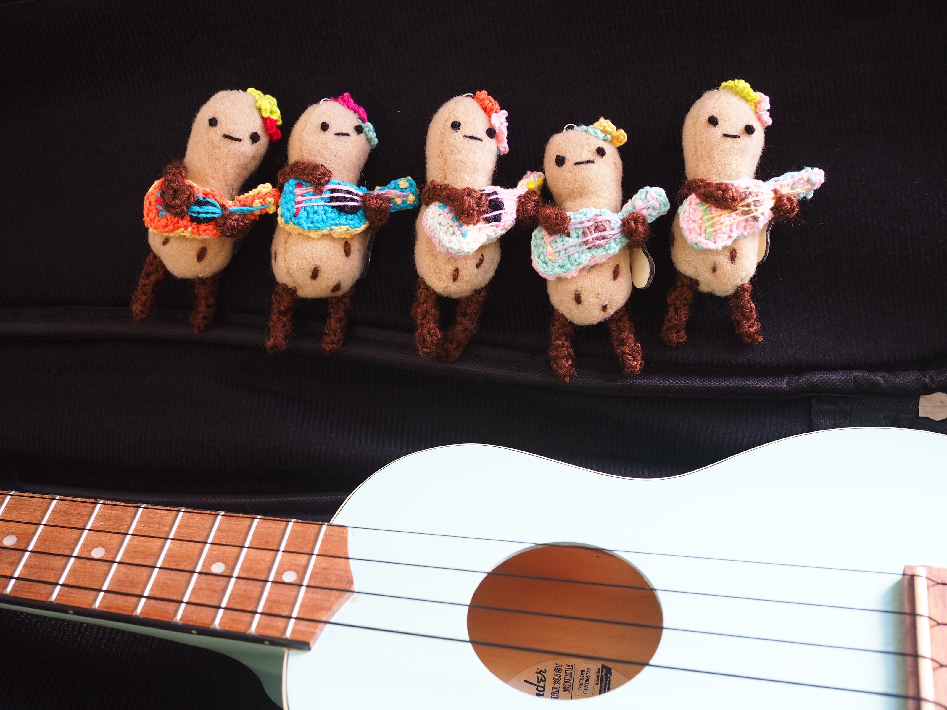 ウクレレケースにつけてレッスンのおともに、キーホルダーにしたり、ポーチやカバンのファスナー部分につけてお出かけしたりすることもできます。