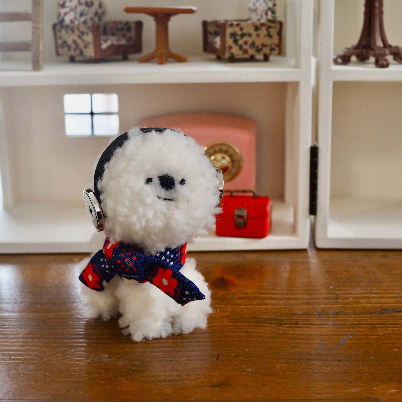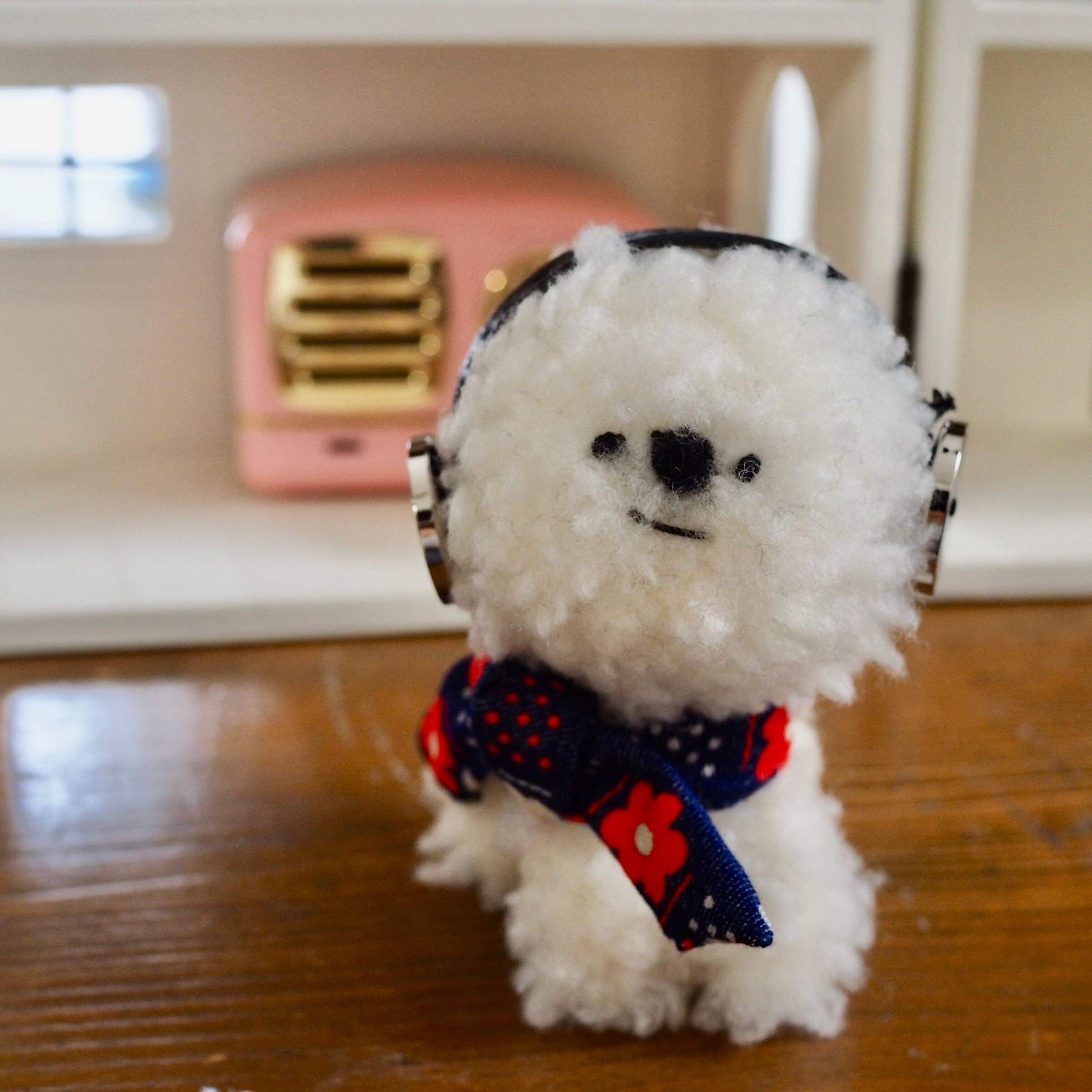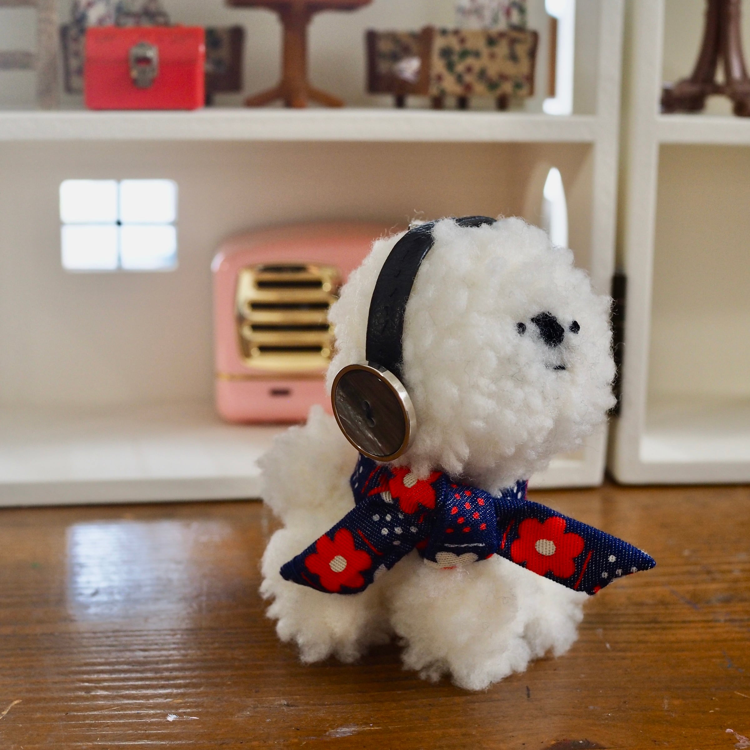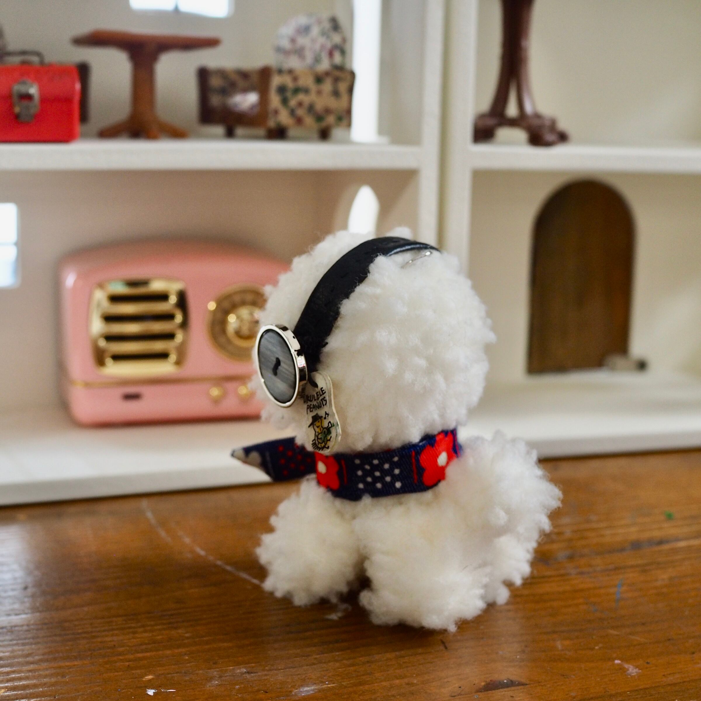 小さな白いモフ犬*レトロなヘッドホンバージョン