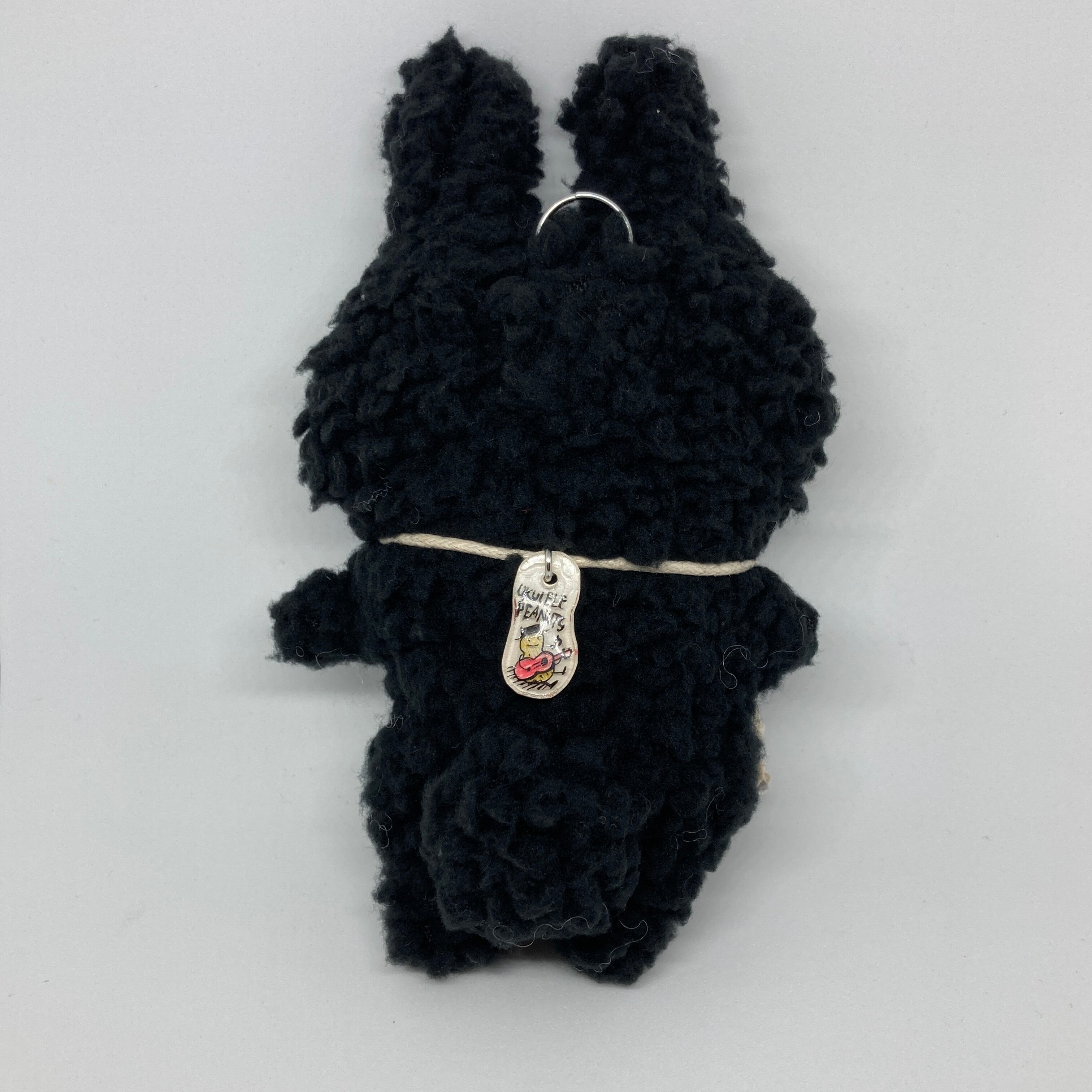 ゆるいシルエットとモフモフの柔らかく暖かな肌触りの黒ウサギのぬいぐるみです。
